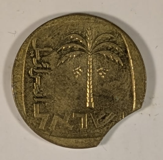 ISRAEL, Error Coin ~ 1974 ~ 10 Agorot ~ Clipped Planchet ~ KM-26 ~ BU