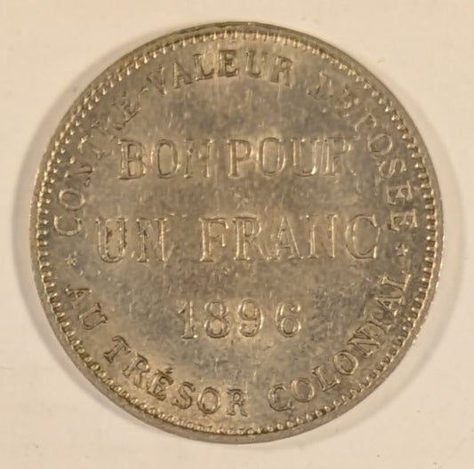 REUNION, French Overseas Department ~ 1896 ~ 1 Franc ~ One year type ~ Y-2, KM-5, Lec-46 ~ Toned EF