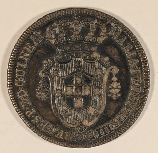 ANGOLA, Portuguese Africa ~ 1783 ~ 10 Macutas ~ Crowned arms ~ Denomination within wreath. One year type issued under Maria I and Pedro III ~ Cr-22, KM-24, Dav-6 ~ Toned VF