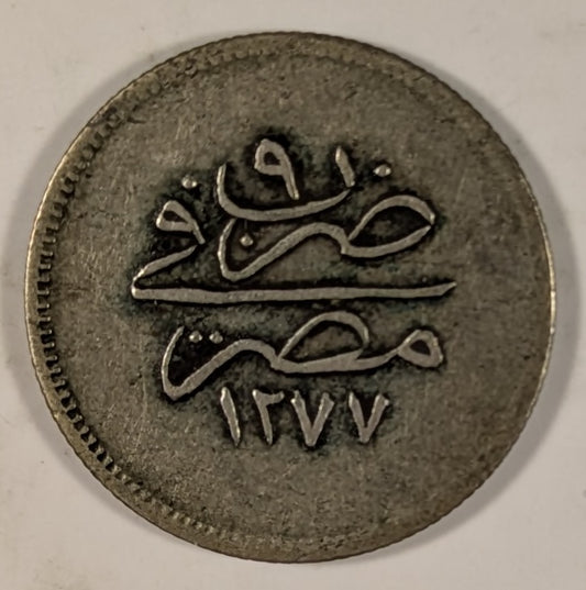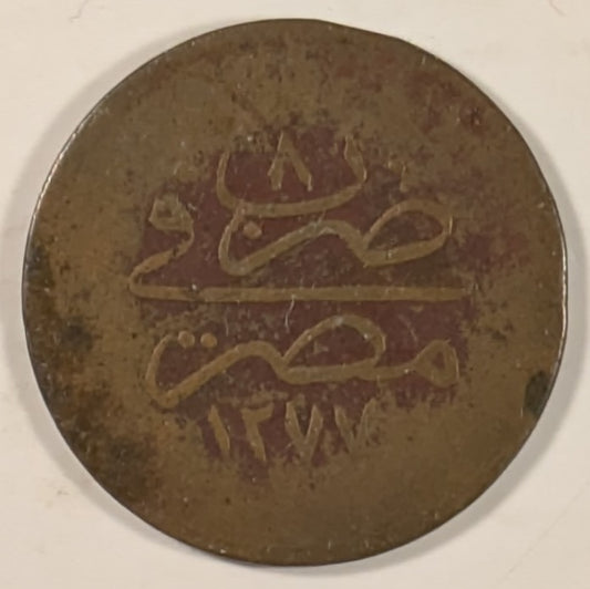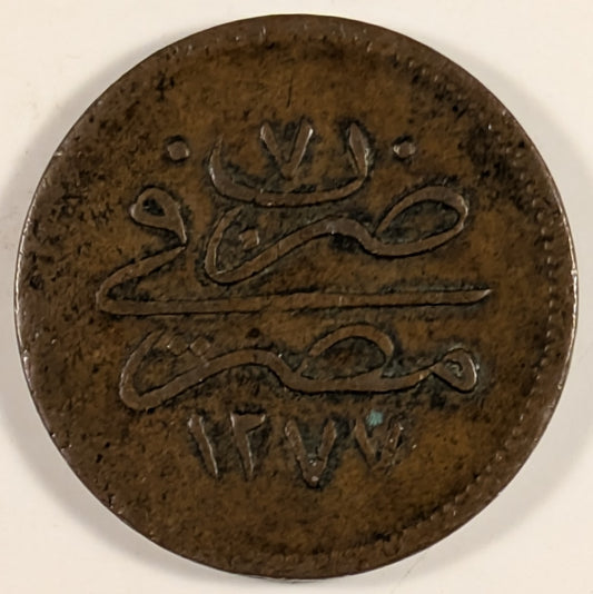 EGYPT, Abdul Aziz ~ 1277/7 (1867) ~ 20 Para ~ 1 year type 3, 29mm, struck at Cairo ~ Rare. ~ Y-3b, KM-245 ~ Crude aVF
