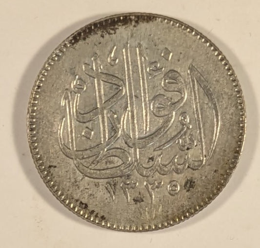 EGYPT, British Protectorate/Fuad I ~ 1920-H/AH 1338 ~ 5 Piastres ~ Scarce one year type ~ Y-45, KM-326 ~ Toned EF-AU
