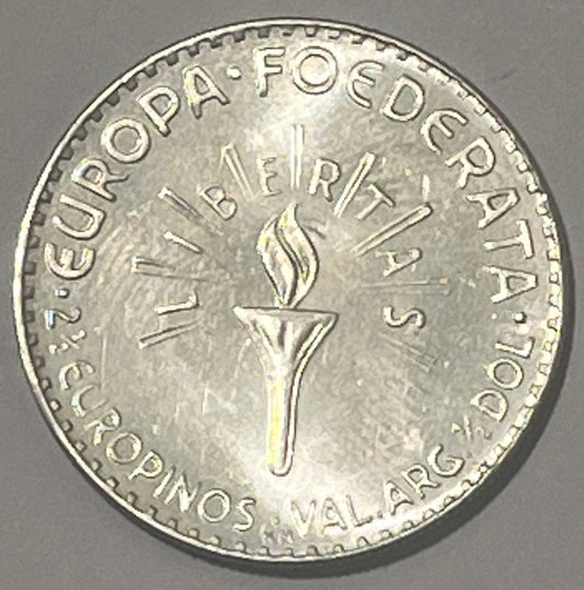 EUROPA FEDERATION, Europino Coinage ~ 1952-HM (Hamburg) ~ 2 1/2 Europinos (= 1/2 Dollar) ~ Bust of Dwight D. Eisenhower right ~ Torch ~ Bruce-X11, Kenny-19 ~ PL BU