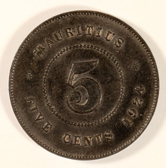 MAURITIUS, George V ~ 1924 ~ 5 cents ~ KM-14, Y-8 ~ EF, hints of red