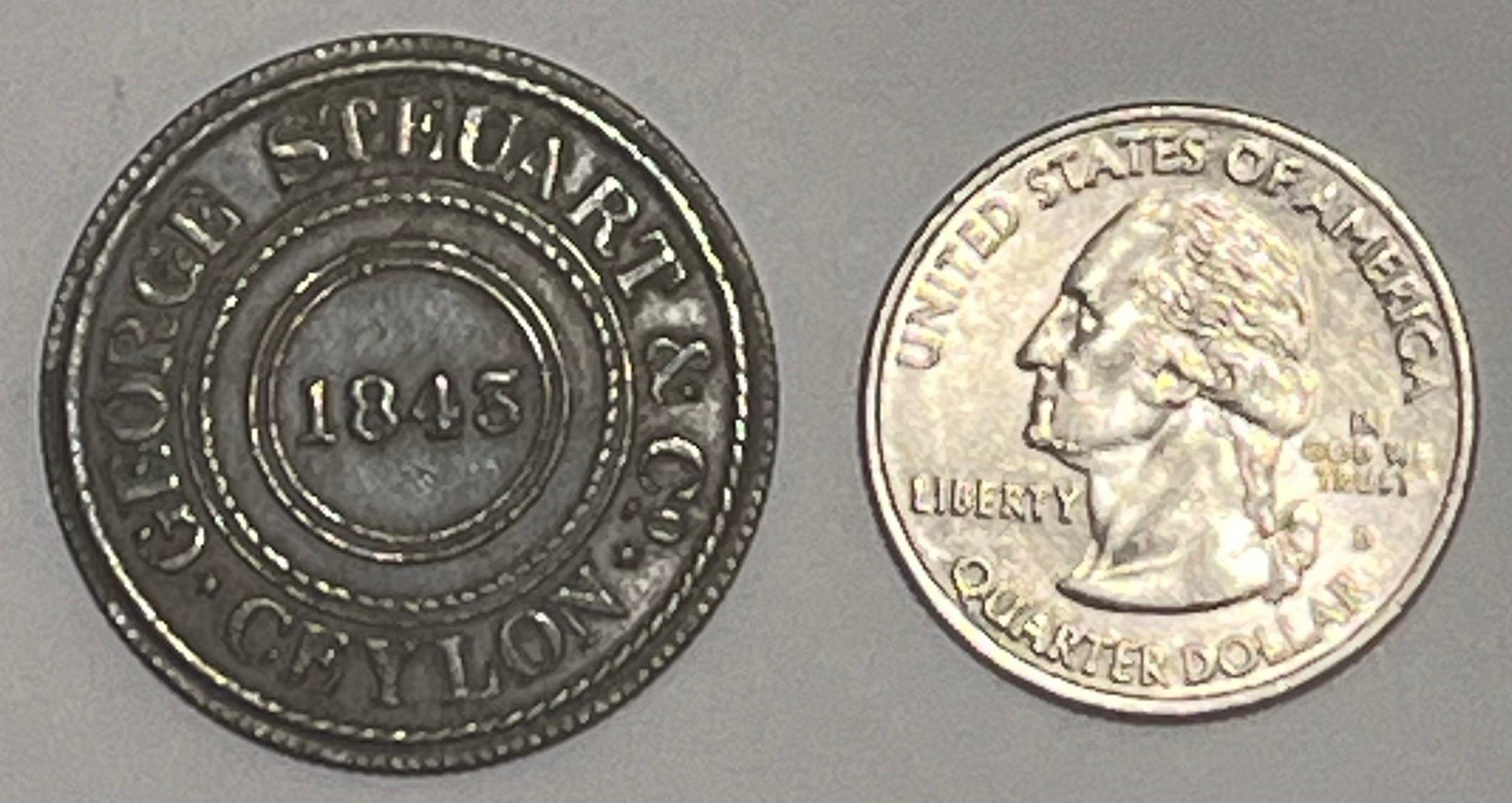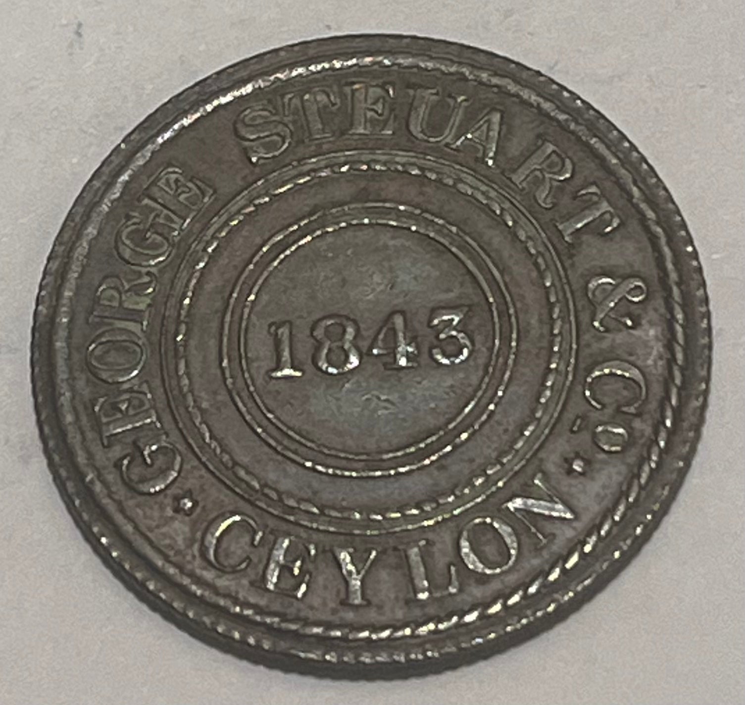 CEYLON, George Steaurt & Co ~ 2 women at work filling sack ~ "George Steaurt & Co Ceylon" around 1843/ "Wekande Mills" ~ Pridmore-96 ~ both the Tamil + Sinhalese scripts are incorrect