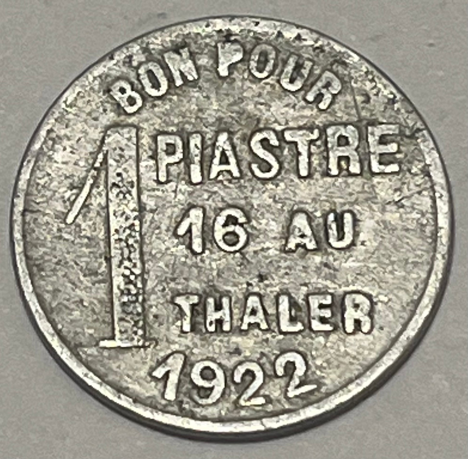 ETHIOPIA, 1922 ~ 1 Piastre, 1/16 Thaler ~ Dire-Dacua ~ Gill-TK2, KM-TN1 ~ 22mm .76? aluminum
