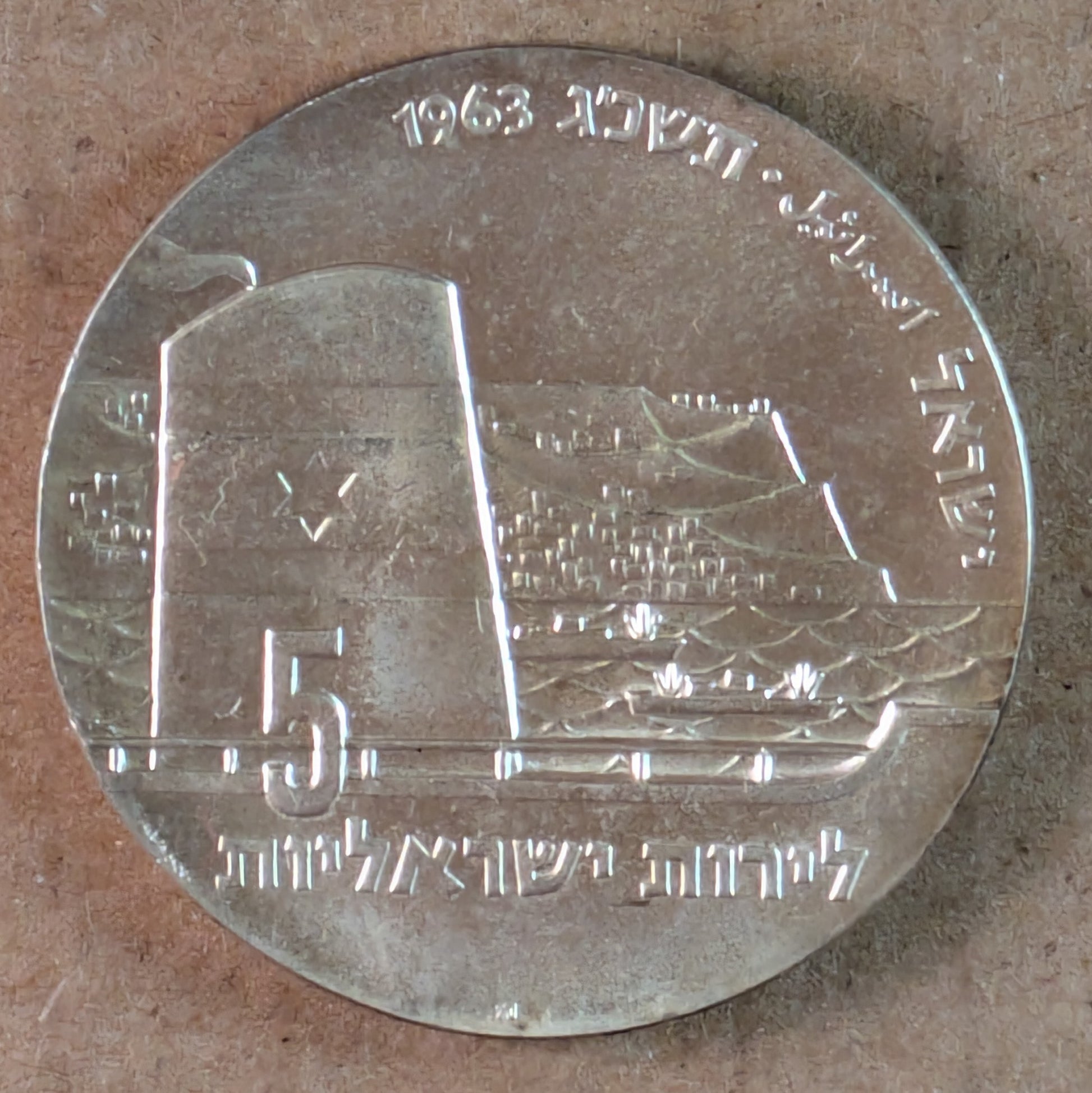 ISRAEL, Seafaring ~ 1963 ~ 5 Lirot ~ Anniversary Series ~ Ancient Galley ~ Modern Steamship ~ KM-39 ~ Proof