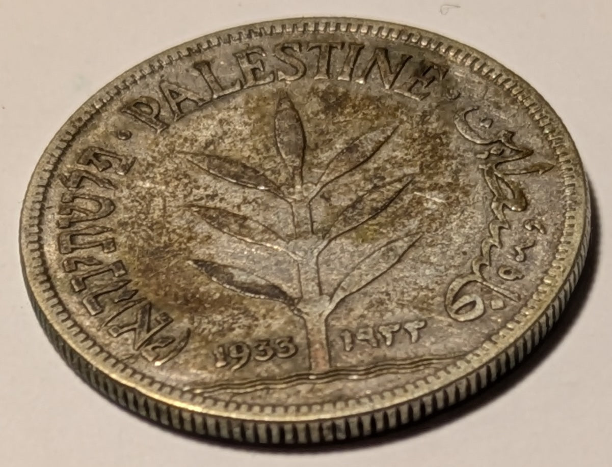 PALESTINE, British Mandate ~ 1933 ~ 100 Mils ~ Semi-key date ~ Y-7, KM-7 ~ VG-F