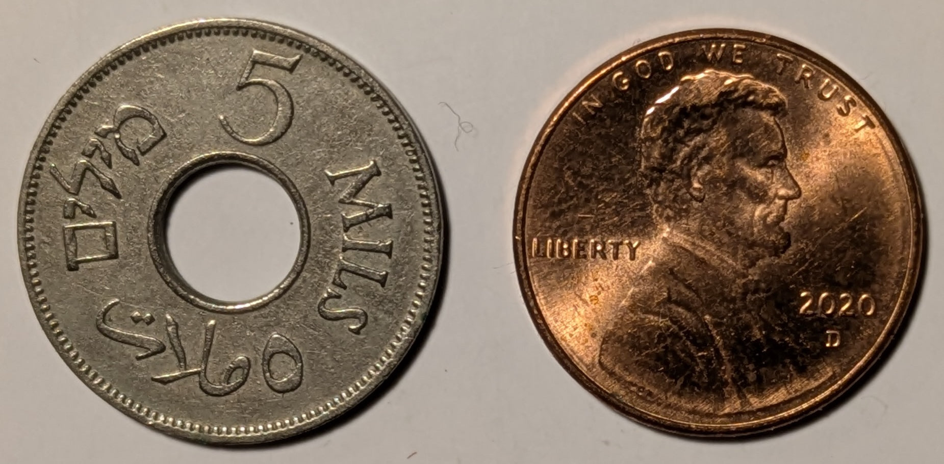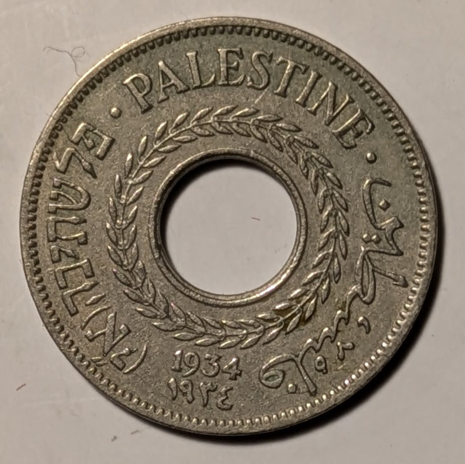 PALESTINE, British Mandate ~ 1934 ~ 5 Mils ~ Key date ~ Y-3, KM-3 ~ VF