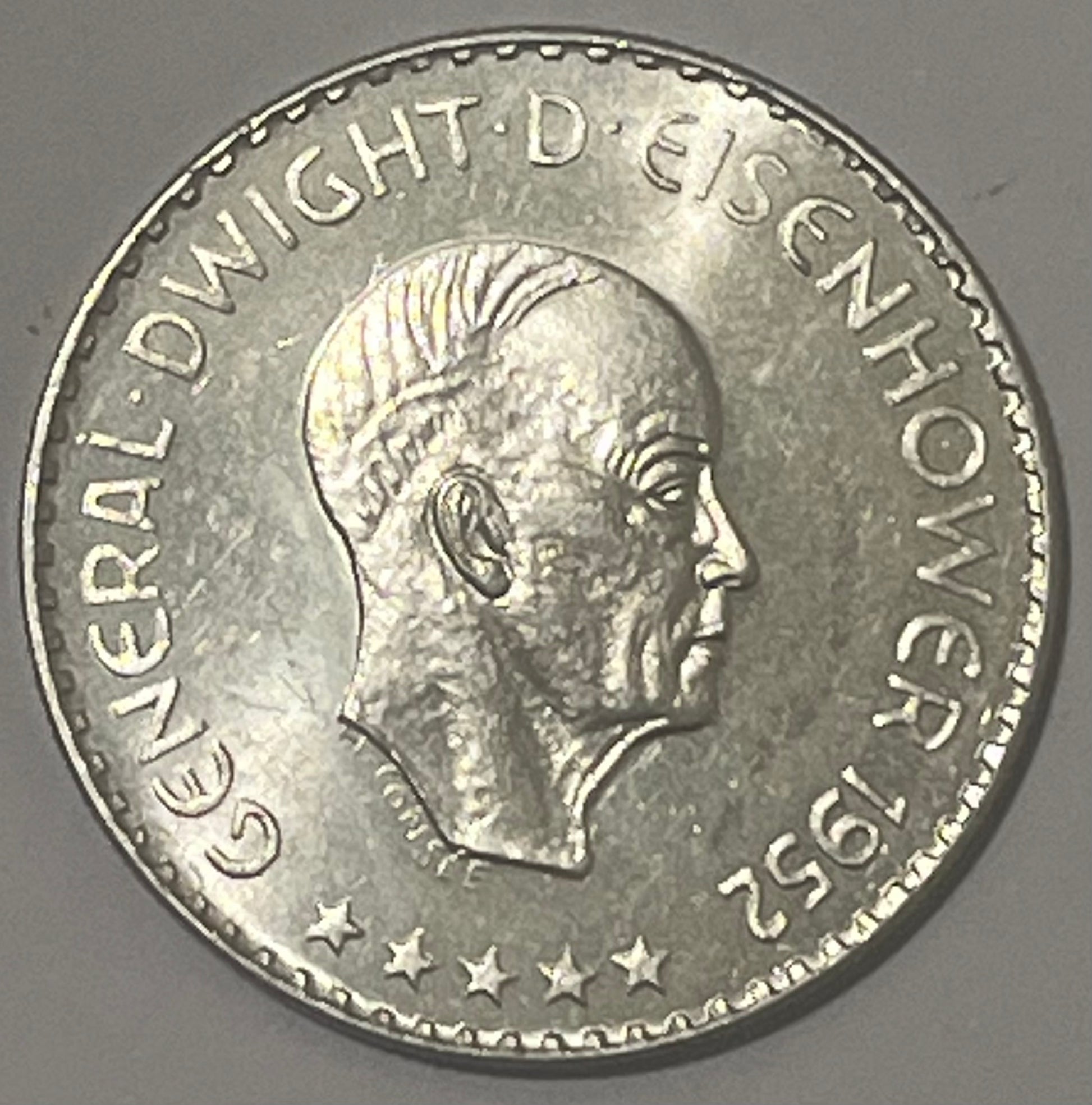 EUROPA FEDERATION, Europino Coinage ~ 1952-HM (Hamburg) ~ 2 1/2 Europinos (= 1/2 Dollar) ~ Bust of Dwight D. Eisenhower right ~ Torch ~ Bruce-X11, Kenny-19 ~ PL BU