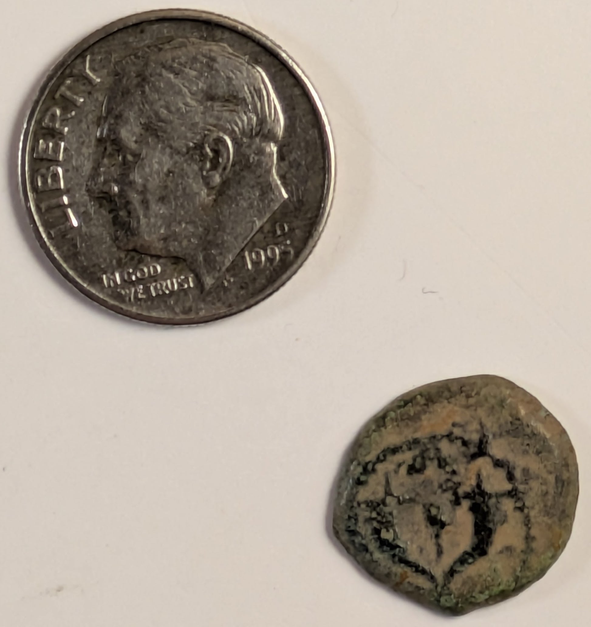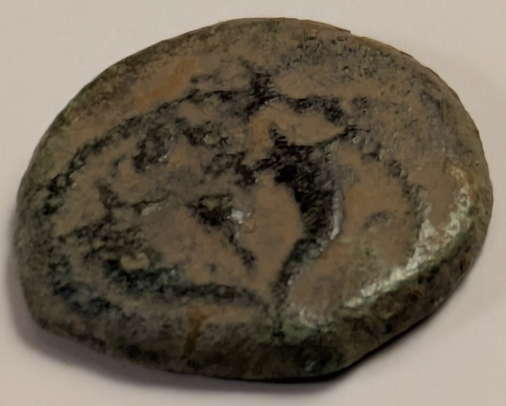 JUDAEA, John Hyrvanus ~ 135-104 BC ~ AE Prutah (1.58g) ~ Paleo-Hebrew in wedge style characters, "Yehohanan the High Priest & the Council of the Jews" ~ Double cornucopia, pomegranate between horns, monograph to lower right (Γ) ? ~ Hen-1135, TJC-D ~ VF