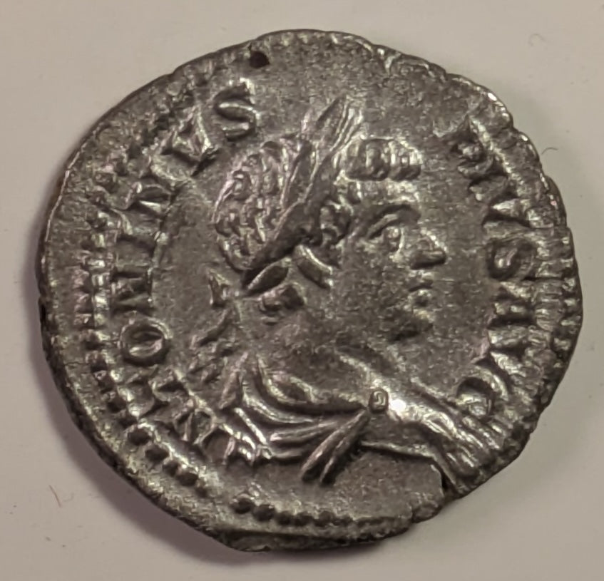 ROME, Caracalla ~ 198-217 AD (205 AD) ~ Silver Denarius (2.88g) ~ Laureate bust right ~ Felicitas standing left, holding short caduceus & cornucopia FELICITAS AVGG ~ SR-6799, RIC-127, RSC-64 ~ Nice EF