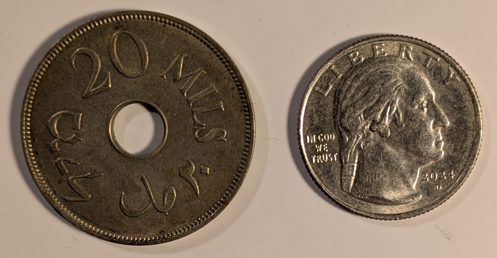 PALESTINE, British Mandate ~ 1927 ~ 20 Mils ~ All 20 Mils are hard to find this nice ~ 1st year of type ~ Y-5, KM-5 ~ Unc., a few marks