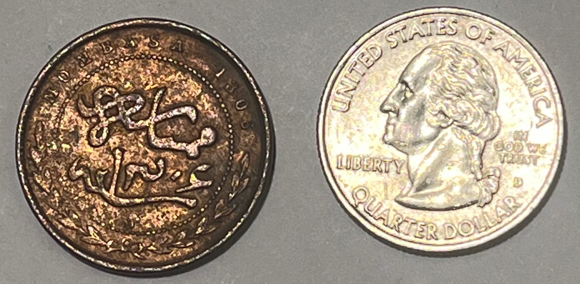 MOMBASA, British Colony ~ 1888/1306 CM ~ 1 Pice ~ small letters both sides ~ CM monogram indicates it was struck at Calcutta mint ~ Y-1, KM-1.1 ~ VF, porous