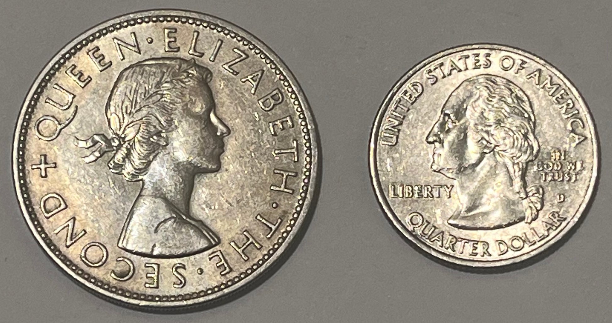RHODESIA & NYASALAND, Federation ~ 1956 ~ 1/2 Crown ~ Queen Elizabeth II right ~ Coat of arms of R&N ~ Y-7, KM-7 ~ EF