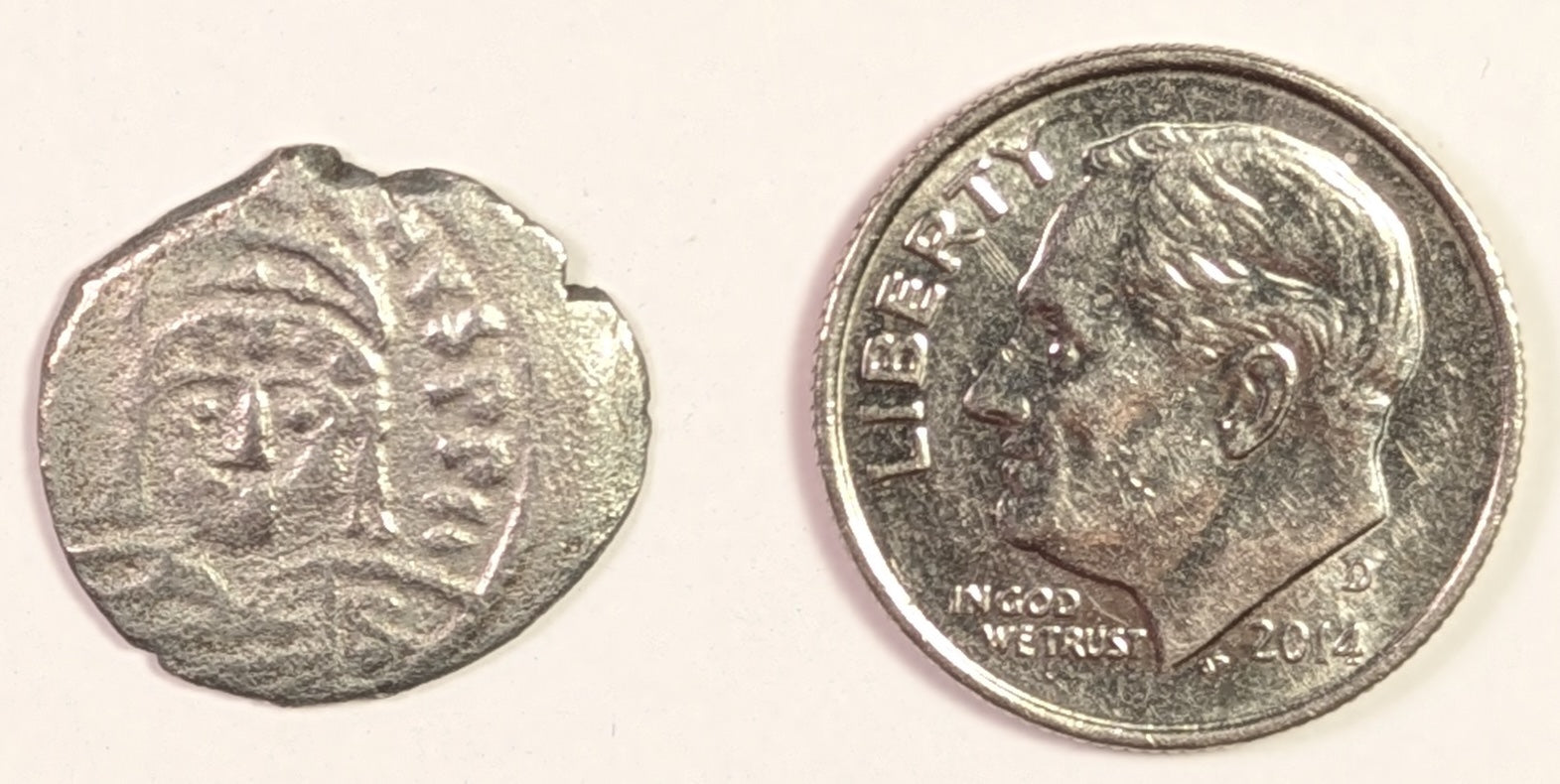 BYZANTINE, Justin II ~ 565-578 AD ~ Silver 1/2 Siliqua (1.13) of Carthage ~ Helmeted facing bust, partial legend “NVSPP” ~ FELIX RES PVBL in 3 lines ~ SB-392, MIB-32, DO-191 ~ aVF/GVF