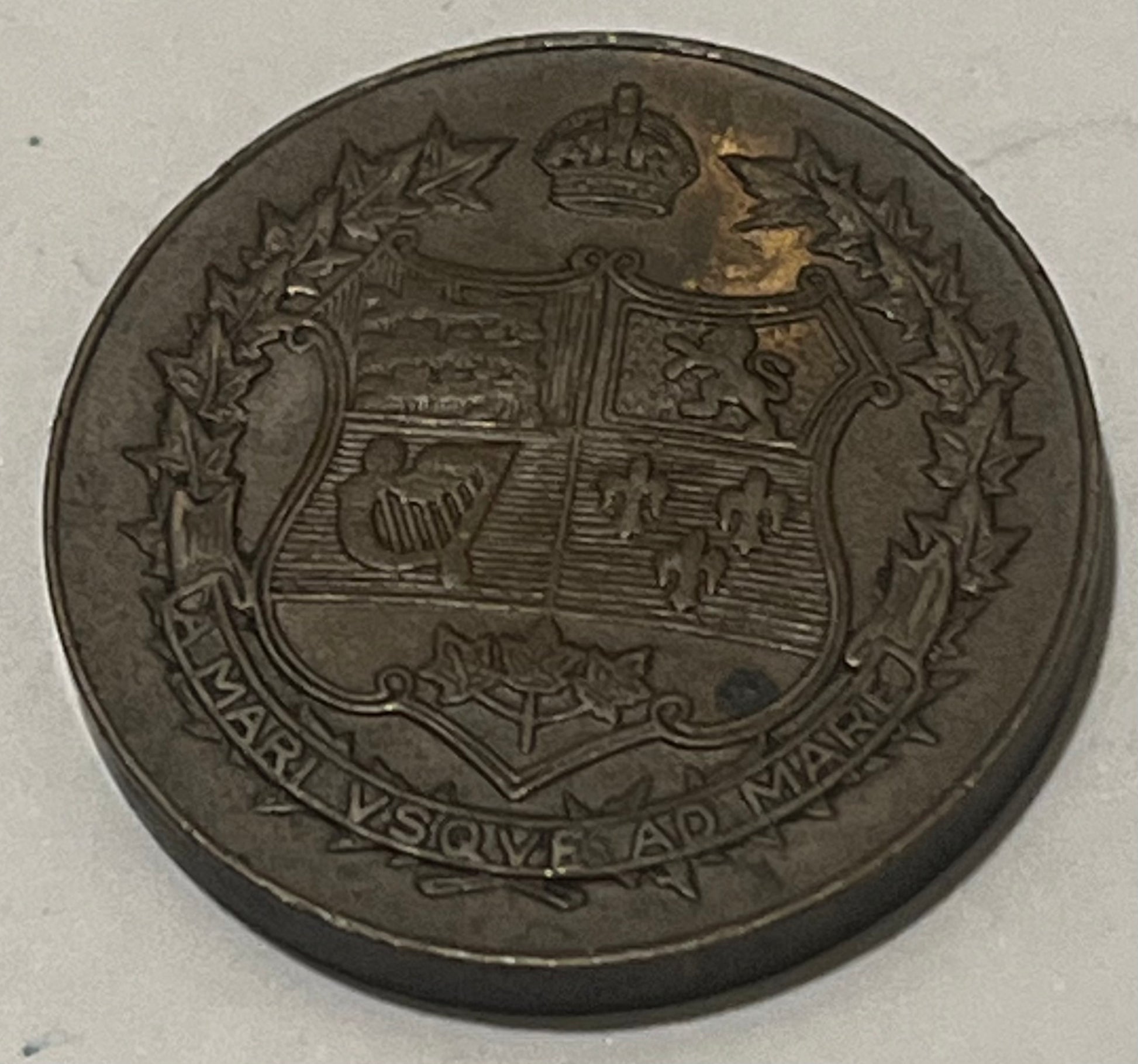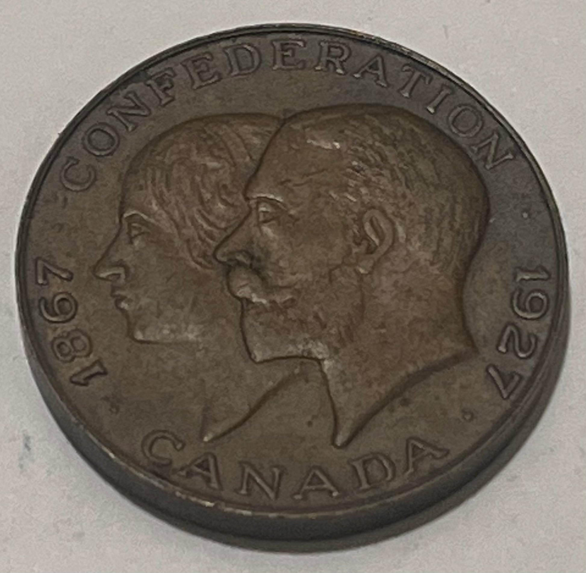 CANADA, 60th Anniversary of Confederation ~ 1927 ~ AE27 ~ Conjoined busts of George V and Mary left ~ Arms ~ TC-234773 ~ EF+