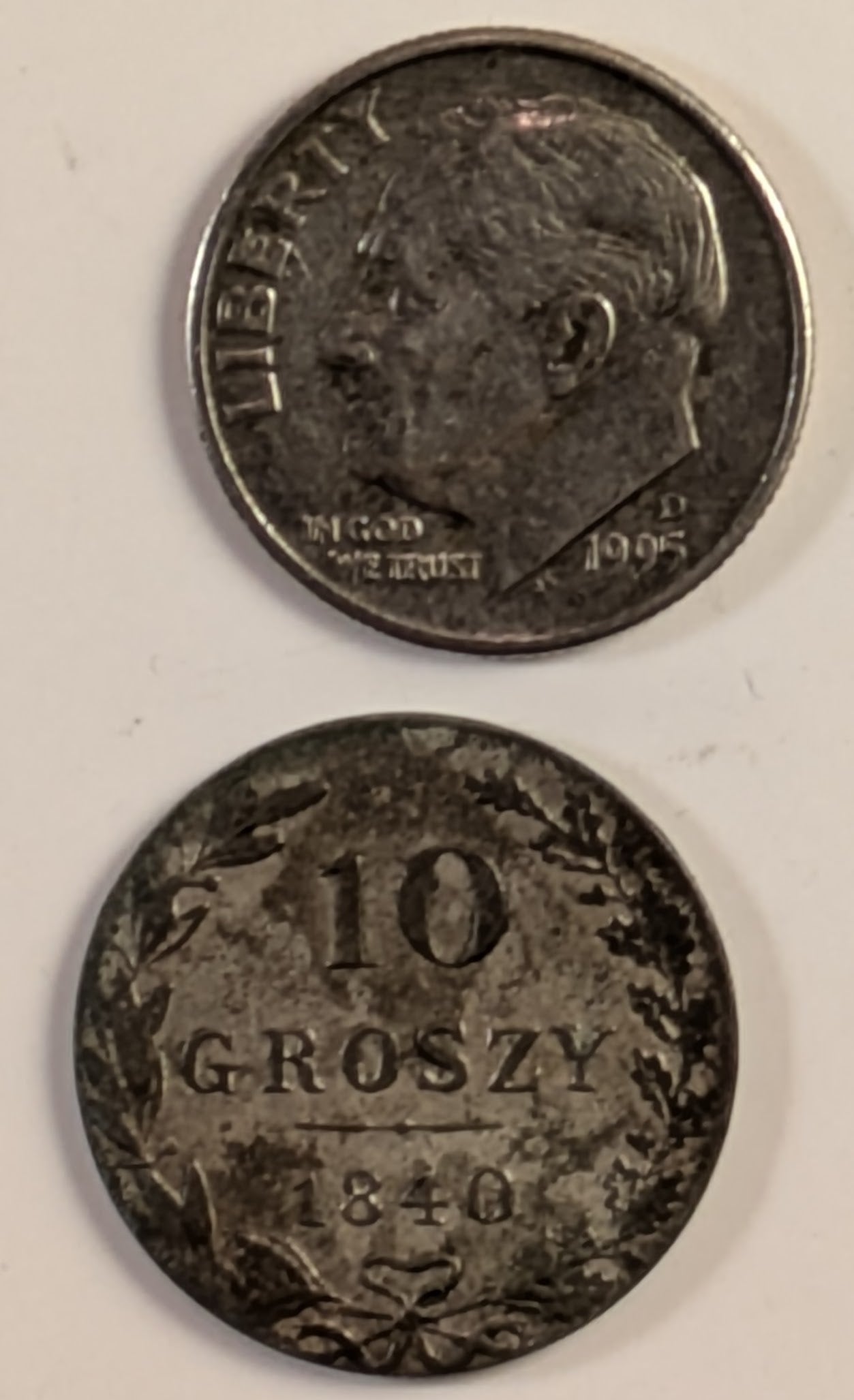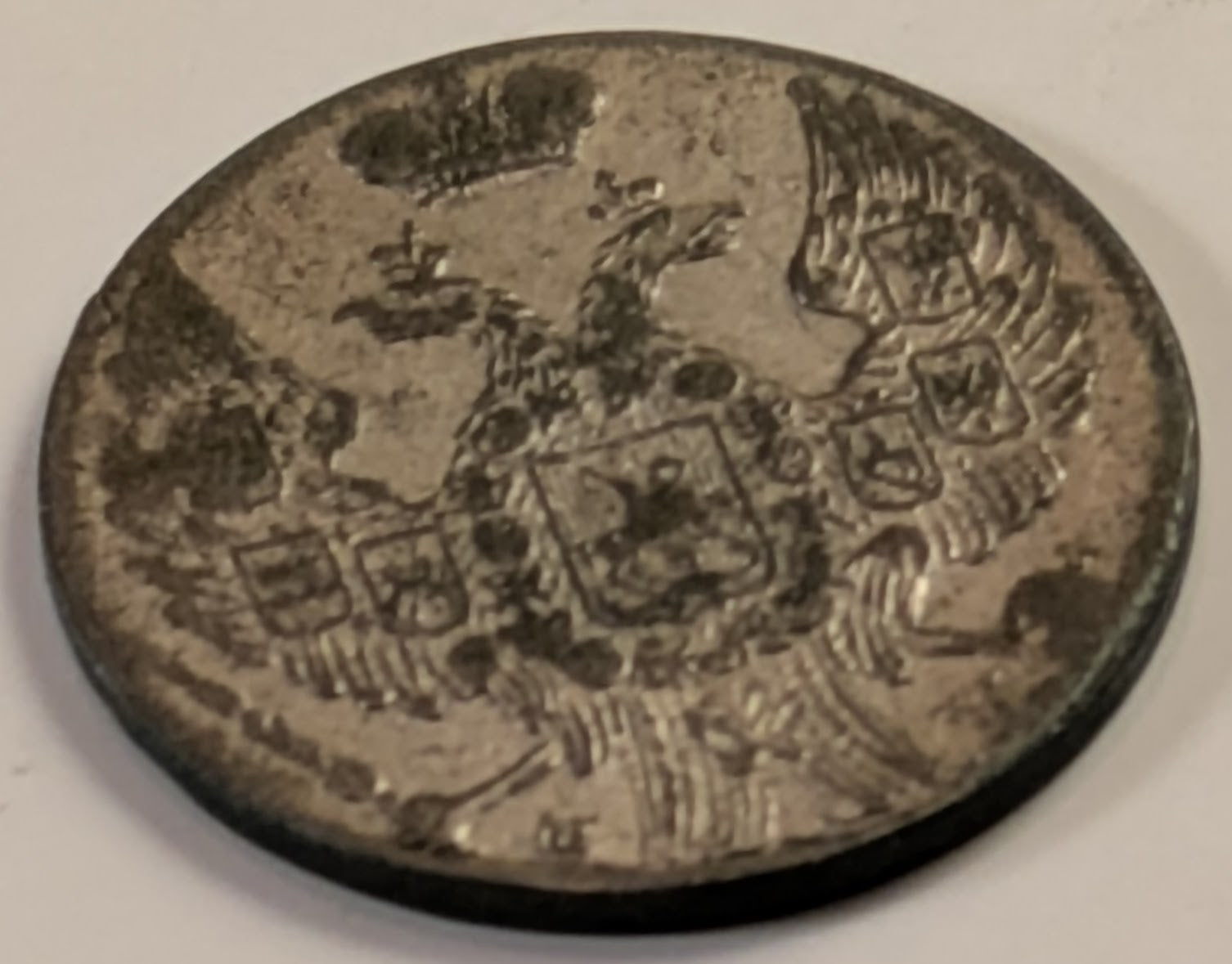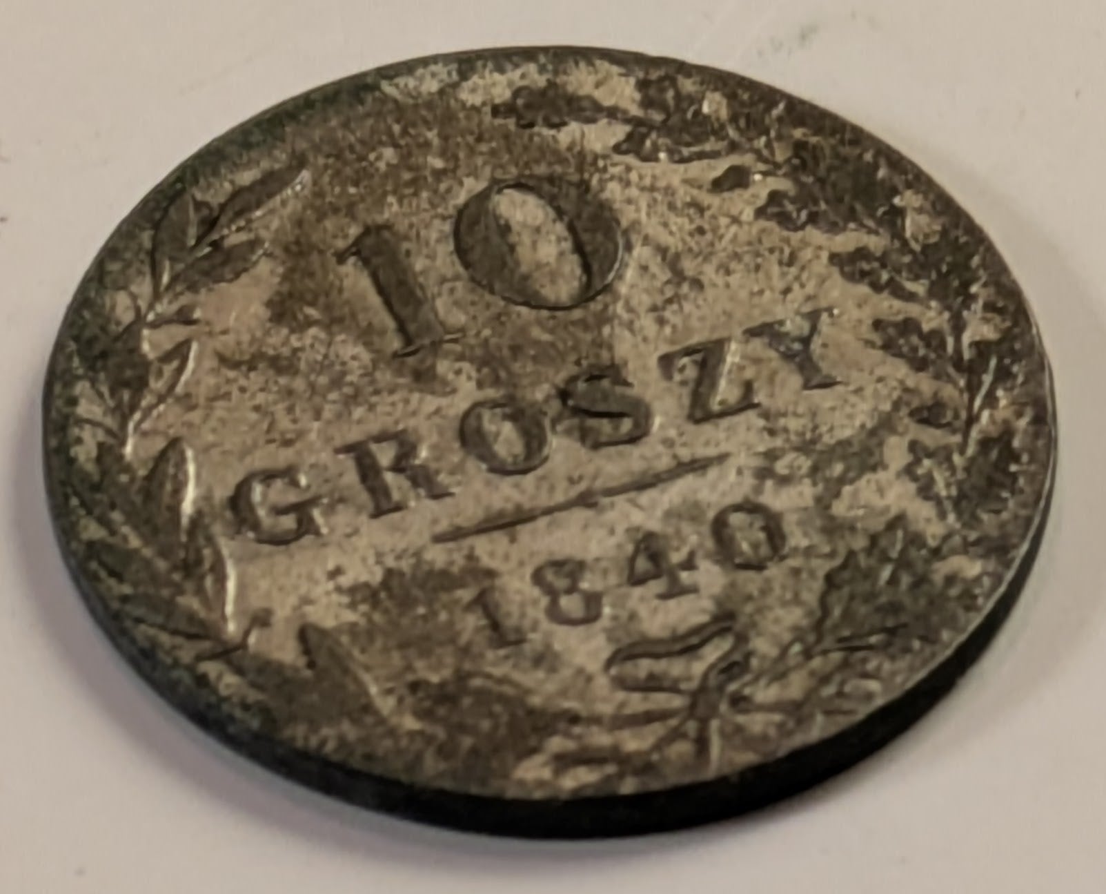 POLAND, Nicholas I of Russia ~ 1840-MW ~ 10 Groszy ~ Double headed eagle, shield with wreath on breast ~ value and date within wreath in 3 lines ~ Toned VF